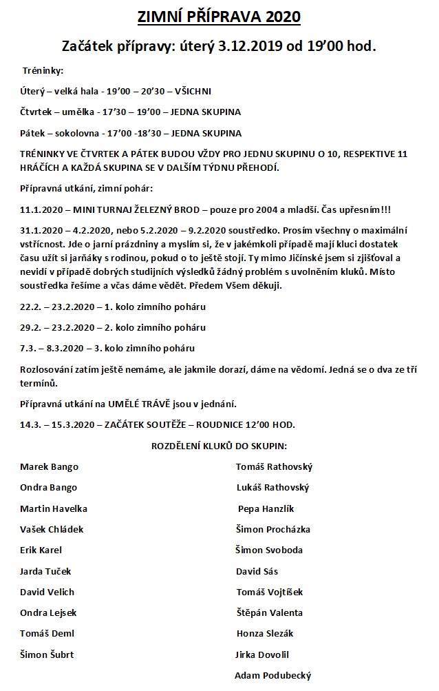 FÓRUM - Jiskra Hořice [hořický fotbal] » SEZÓNA 2019/2020 » Dorost - informace pro hráče